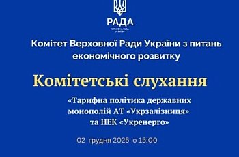 02 грудня 2025 року відбулися слухання в Комітеті на тему: «Тарифна політика державних монополій АТ «Укрзалізниця» та НЕК «Укренерго»