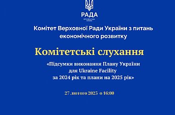 Слухання в Комітеті на тему: "Підсумки виконання Плану України для Ukraine Facility за 2024 рік та плани на 2025 рік", що відбулися 27.02.2025 року